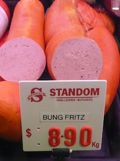 Okay, this looks very interesting. I have to say I would not mind trying the kangaroo, and the lamb looks very nice, even in its shiny plastic packaging (much better than lamb ever looks in the states). But, I have to say, the "bum burner" and the "bung fritz" seem a little disturbing, if for no other reason than their name. The latter looks like the equivalent to Italian mortadella or American bologna. But it's just that name… bung fritz… It sounds somewhere between a little gross and a little naughty.