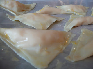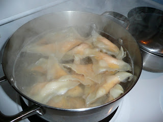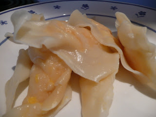 Inspired by my good friend Cathy who made this Emeril Lagasse recipe last time we visited her in Grand Rapids, and by this recent blog post on EatBlogSleep, I decided to use up the last of the green garlic (leftover from this salad) and the wonton wrappers we had in the fridge before I head off to Australia and Asia on Wednesday for nearly 5 weeks: