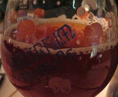 I have very fond memories* of a trip to Bruges (Belgium) with my best friend Liz (hi!) in about 1997 where we drank our way through the list of a cute little bar and ate a lot of cheese and – miracle of miracles – didn’t even feel hungover the next day. Those monks know what they are doing, I tell you. I still have an empty bottle of Delerium Tremens lurking about somewhere in the basement – the flying elephants are soooo cute. The other night, the Delerium Noël came in a pretty glass… (that I really wanted also…)