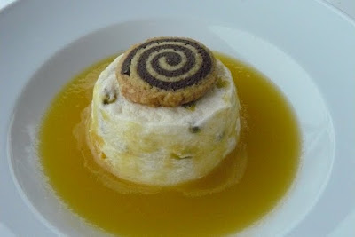 Dessert was a baked passionfruit mousse with seeds (which suspiciously looked like more roe to Alicia). The mousse was served with honey, mango coulis and a lovely swirled two-toned cocoa-saffron shortbread which was baked by Mardi and her fellow cooking class compatriots downstairs in the Electrolux kitchen! (Mardi’s note – well not these particular ones but I DO know how to make them now!)