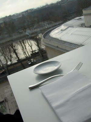While we enjoyed a spectacular view of the Eiffel Tower and attentive service from our oh-so-French waiter, Mardi was slogging away in the Electrolux kitchen downstairs. That sort of set the stage for our emotionally beatific lunch. 🙂
