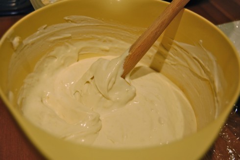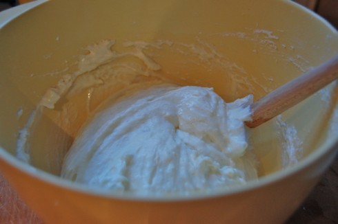 In a large bowl, beat the mascarpone cheese with a spoon to break down the lumps and make it smooth. This will make it easier to fold. Add the prepared and chilled zabaglione and pastry cream, blending until just combined. Gently fold in the whipped cream. Set this cream mixture aside.