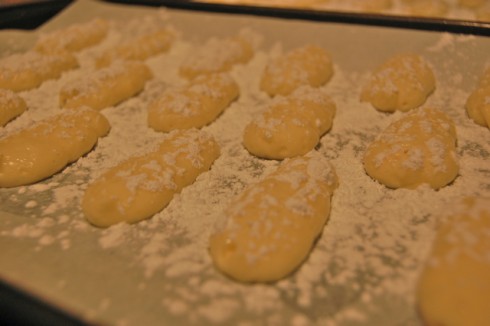 Bake the ladyfingers for 10 minutes, then rotate the sheets and bake for another 5 minutes or so until the puff up, turn lightly golden brown and are still soft.