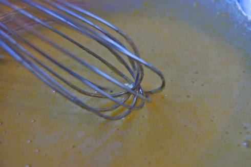 Now place the saucepan over low heat and cook, stirring constantly to prevent the mixture from curdling.