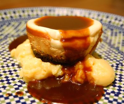Mardi’s “Inspired by the flavours of tiramisu” marscapone cheesecake with a chocolate/coffee crust and molten caramel coffee sauce, served on a bed of custard.