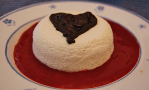 Next up, for St Valentine’s Day, Coeur à la crème. Or actually, just “à la crème” since I have none of the lovely heart-shaped molds you need to make this dish, like these