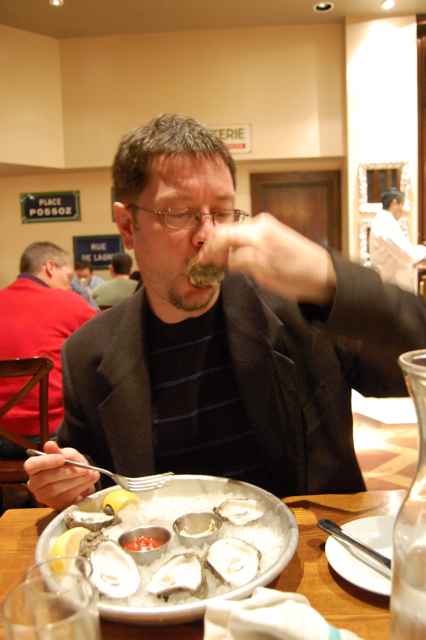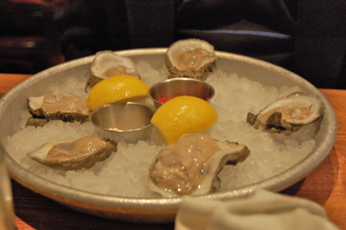 Which they were. But you know, had I wanted a green salad, I would have ordered one, you know? The flavours, however, were spot on. I loved the addition of the pistachios – generally you might expect walnuts or pecans in such a salad. I will definitely attempt this at home as I learn to love beets this year! And Neil enjoyed the bonus green salad. He also enjoyed the “plateau” of P&J oysters ($7.00/half dozen):