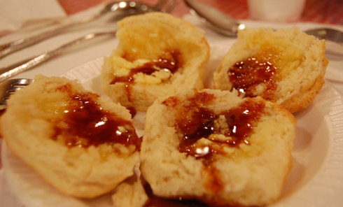 Since, you know, the course started at 10am and we wouldn’t be eating the “generous tasting portions” until after noon, they brought us some “biscuits” with butter and syrup to stave off the hunger pangs. (these are what I would call scones and reminded me of my Nana’s home-made scones. All that was missing was the jam and cream!)