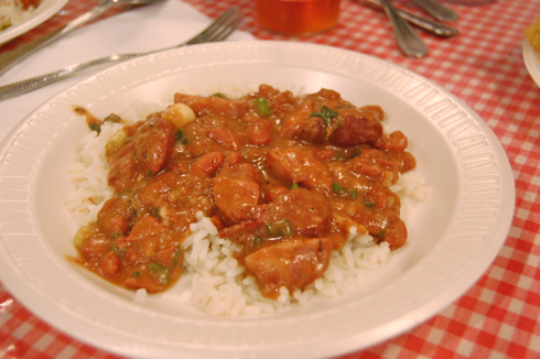 Can’t complain, though. I did get in: beer, hurricane, sazerac, prawn gumbo, crawfish etouffee, corn bread, red beans ‘n rice, pralines, pecan pie, muffeletta, po’boy, cajun crisps, beignet, oysters, blood sausage, rabbit pate, pizza….