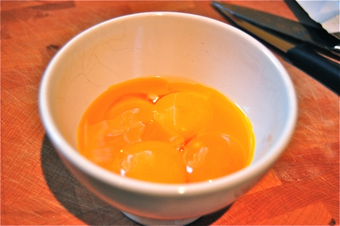 We actually had a hard time getting the egg yolks to become frothy like they are supposed to – these farm fresh babies are SO creamy already!