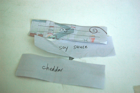 We were also allowed to use “pantry staples” so Neil and I selected sugar with the hopes of creating some kind of green vegetable gratin with an Asian-caramel sauce. It didn’t look so appealing: