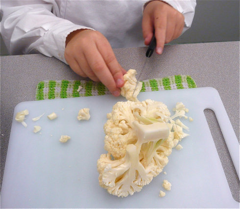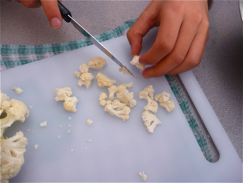 Last week we had a small crew of Petits Chefs due to a change in schedule but we went ahead and made a quick and easy dinner dish that the boys were delighted with – mac and cheese (sneaking in the high fibre with whole grain pasta and cauliflower!).