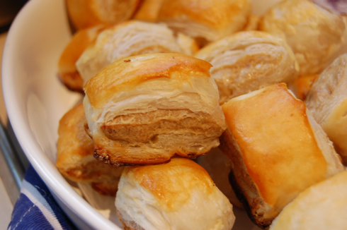 Perfect holiday hors d’oeuvres. Bite sized, flaky puff pastry and tasty morsels of beef. Feels like Christmas to me!