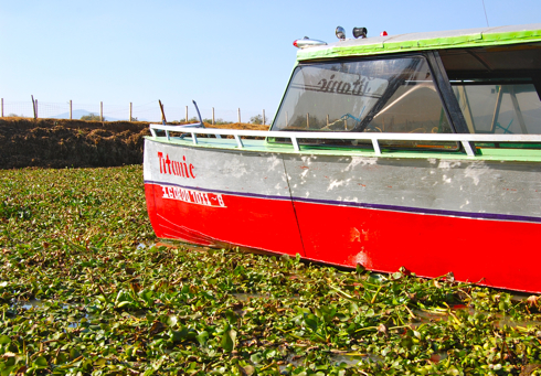 According to MexConnect, masses of water hyacinth have many effects. They block canals, ditches and pipes used for agriculture, recreation or hydro-electric power, increasing the potential flood risk. Their proliferation reduces water movement, and the penetration of sunlight, and decreases the amount of dissolved oxygen in the water, endangering phytoplankton and fish stocks. The dense mats of hyacinth create ideal microhabitats for various undesirable organisms such as mosquito larvae (malarial included). They are, indeed, everywhere.
