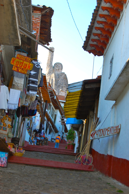 The short (20 minute) trip takes you to the tiny island, whose name means “where it rains” and whose town is precariously located literally atop a hill. At the very top is a giant statue of José María Morelos, a great hero of Mexico’s independence – it’s visible from most places on the island.