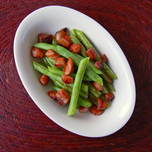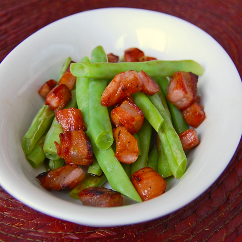 Yes if only I had green beans from the garden. Oh wait, I don’t have a green thumb. I guess the home made pancetta makes up for this!