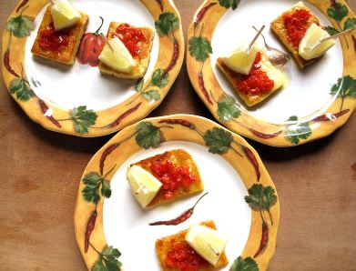 Foodiva went all out, following my lead, and made three fabulous dishes: Halloumi with chili, pigs in blankets, and cherry cheesecake. Isn’t her halloumi with chili fabulous?