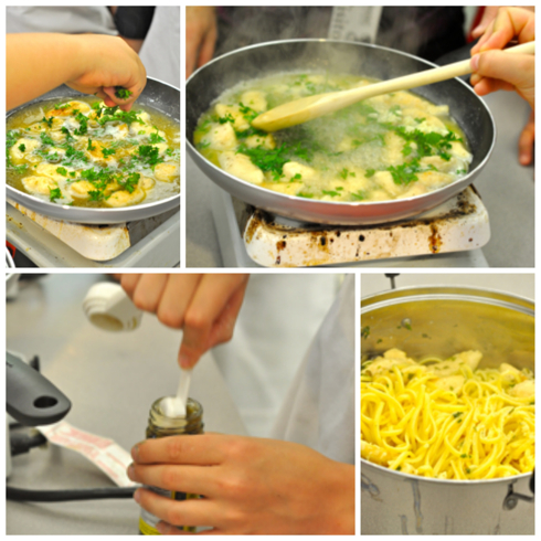 Causing passers-by to stop and peep in at the organized chaos that is Les Petits Chefs! However, out of the chaos, the boys produced two professional looking dishes that received rave reviews from both the boys and the parents of those who managed to save them a little taste!