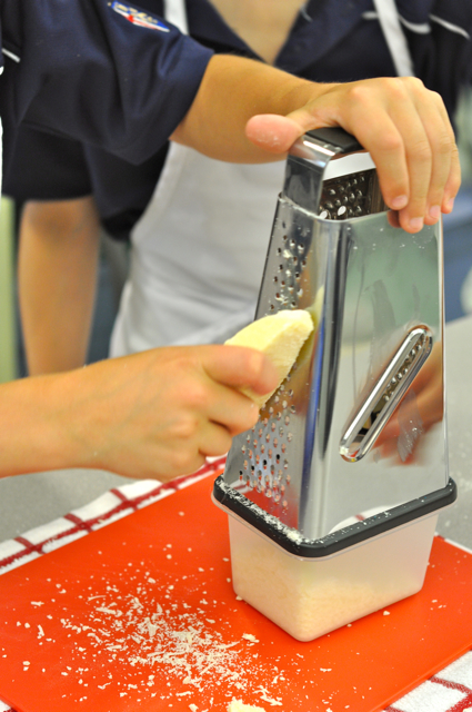Some of our Petits Chefs were off at the warplane museum on Monday so I invited some other boys to come and join in to make up the numbers. We had a mix of Grades 4 and 5, and after introducing herself and chatting briefly about her job, Adell divvied up the jobs and made her way around all five stations, helping the boys out with their tasks.