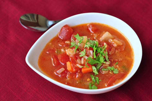 Tex-Mex tomato rice soup. This one has a kick! You can definitely taste the two jalapeño peppers. I love that we prepared this chunky-style – it’s lovely and rustic. One of the boys took it home and puréed it and served it to his whole family in shot glasses. I had better watch myself, huh?