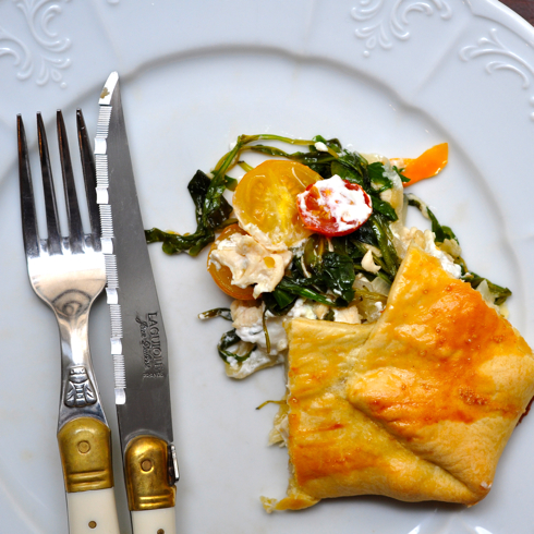 Next up, I was honoured to be asked to write a guest post for Jackie, a London-based food blogger and as luck (and my fridge) would have it, I ended up working on another goat cheese dish – a Galette with chèvre, chicken, cherry tomatoes and arugula. This was so good, I made it twice!