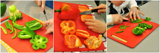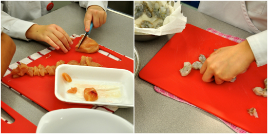 Charles and Jeremy dealt with the chicken. Ronin and Wil enjoyed cutting the shrimps in half.