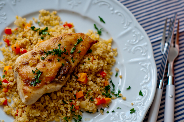 Chicken instead of fish, what a lovely idea, Mardi! I’ve been totally off the FFWD bandwagon for weeks but I look forward to doing the lemony pilaf this week. I looked closely at yours, and it’s given me some ideas to use as an alternative to barley 🙂