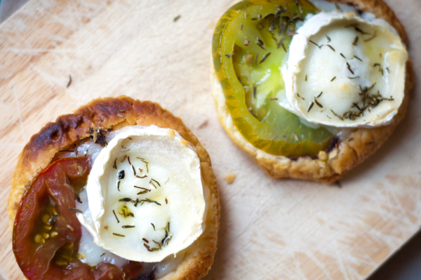 I made three to test them out (It took me ages to figure out the oven in our rental house here and then I didn’t have a second baking tray to weigh the puff pastry down and it was, well, puffy – puffier than it should be…) and as soon as I had taken their pictures, they were pretty much snaffled up my mum, dad and Neil. Fortunately there were more. I loved these – tapenade, tomatoes and goat cheese with a splash of olive oil and a sprinkle of thyme. So easy, so tasty!