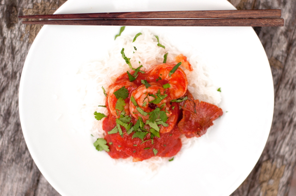 I wouldn’t say it was a truly bad recipe, but it should definitely go back to the test kitchen for revision…especially where the tomato puree is concerned. I only used 1/4 cup, enough to take on the flavors of the spices and lightly coat the shrimp. I thought it was more Thai or Vietnamese flavored than Chinese although I’m not really sure what origin it actually has, if any! I did enjoy it.