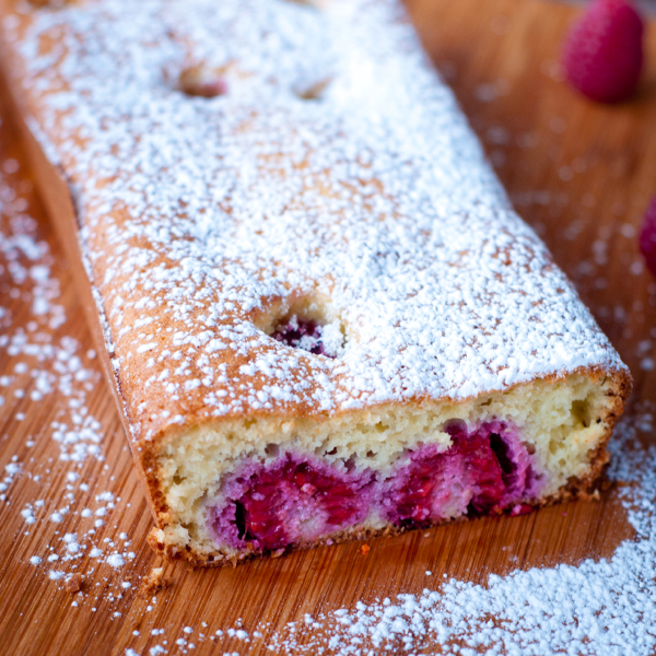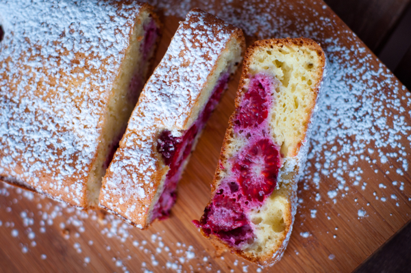 Well, as you can imagine I wasn’t too happy with that so I checked how many raspberries I had left and realised I didn’t have enough for a full cake (plus, you know, this makes a HUGE cake and we really don’t need a huge cake around here right now!). I quartered the ingredients (hello calculator and scale!) and used a smaller loaf pan to make a much smaller loaf both in length and in height. This time around the batter was much more fluid, more silky – the first round was quite a thick batter that had to be spread into the pan – the only thing I can think is that I might have mis-measured the first time but that would be unlike me. Not impossible, just unlikely. In any case, the result wasn’t quite what I had hoped for…