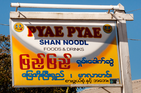 After an early morning at the market and a walk in the increasingly hot sun, we’d worked up quite an appetite so we headed for a local specialty – Shan noodles – at a tiny restaurant we’d discovered the night before, Pyae Pyae, specialising in Shan noodles.