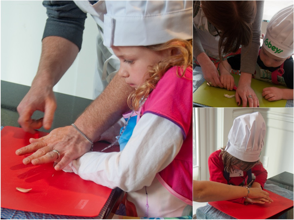 Crushing garlic (and hey, I think a couple of the adults learned a trick or two here!)…