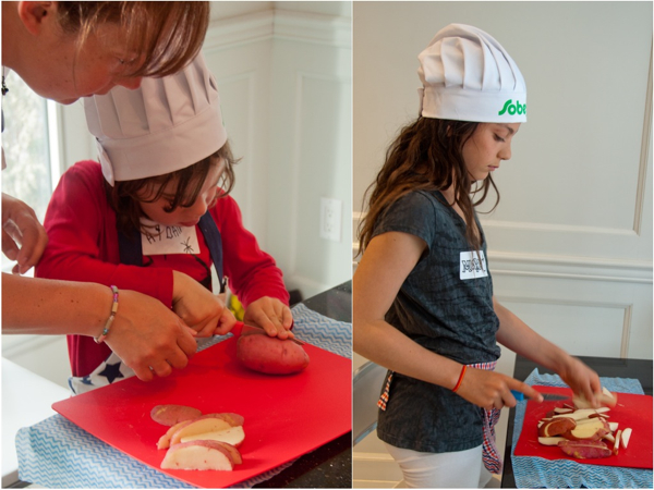 From the potatoes to the chicken to the salad, these kids worked hard and learned some great basic kitchen techniques on the way. Slicing potatoes into same-sized wedges so they’d cook evenly…