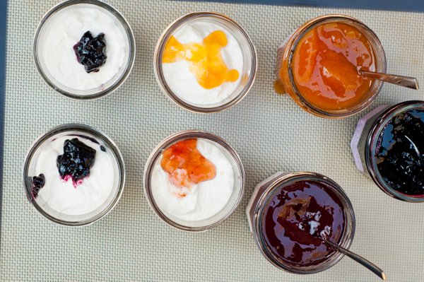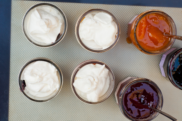 The best way I knew how to do this was to find the best quality preserves/ jams I could and layer them with a lightened-up version of my mum’s coeur à la crème (which I make different versions of with great regularity).