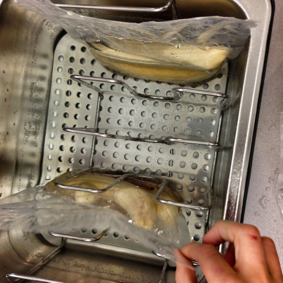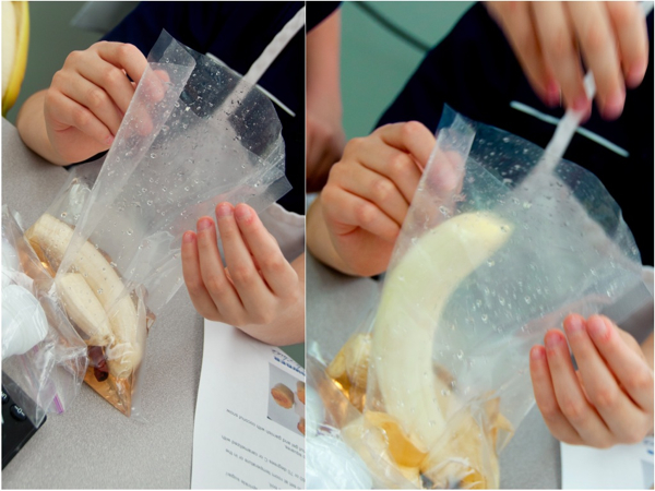 … and watched, fascinated as John sealed the bananas in food-safe sous-vide bags…
