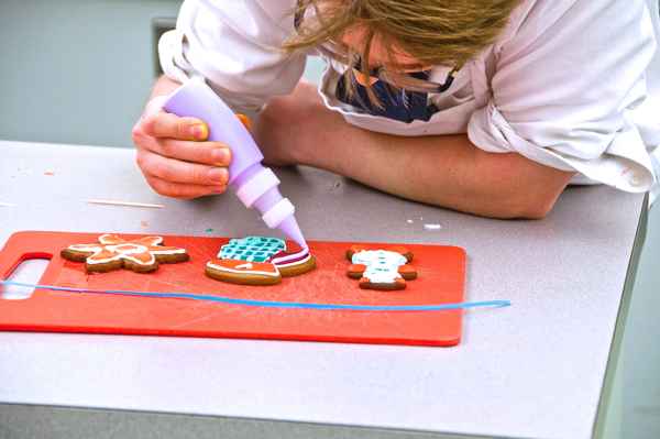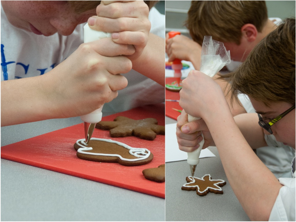 And before even all the colours had been mixed, some boys were getting started on the decorating portion of the class. Can I just say that a class where 9-11 year old boys spend 45 minutes decorating 3 cookies is pretty awesome? For so many reasons!