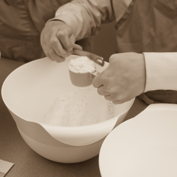 We started out with the baking portion of the lesson. We measured, mixed and stirred…