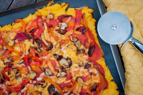 That looks wonderful. I know when I’m looking for g-f recipes for Kevin, I often prefer things that aren’t trying to replicate gluten-y foods (though that can be great, too). A polenta crust stands on its own as a delicious base. And with some Daiya “cheese” it would be vegan, too.