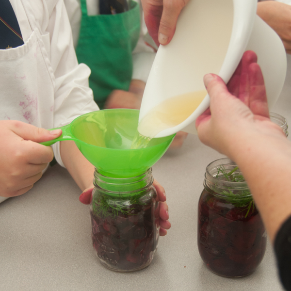 then watched as Joanna prepared the hot syrup to pour over (and do its “pickling” thing!). Vinegar, water and sugar boiled up and poured over the beets.