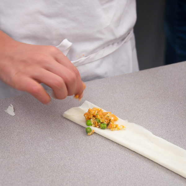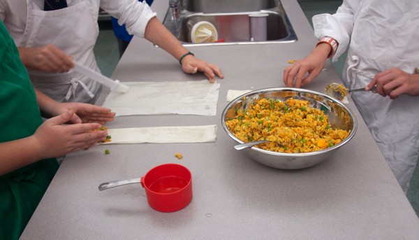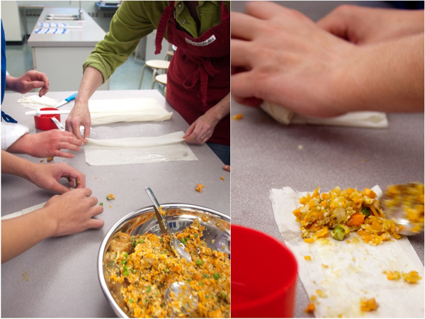 Veggies blitzed, herbs and spices measured out, we got to filling the samosas. I am not the best working with phyllo pastry so I was very happy to have Charmian there to show them the way (I picked up some tips too!). Charmian was a great teacher, calm amongst the organised-chaos and patient. And I have to say the boys did me very proud. They wrapped those samosas like they do this all the time. No fear. That’s what I love about cooking with kids. I went home, my tail between my legs thinking “If the boys can wrap those samosas, I certainly can too!”