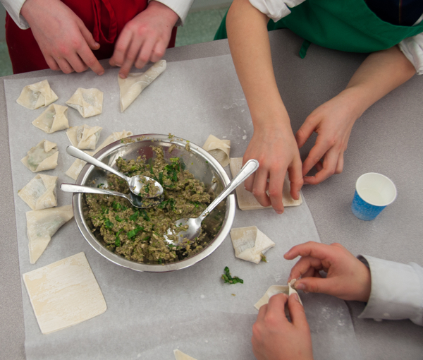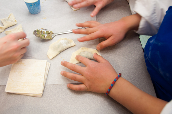 One boy asked why we weren’t making the wrappers from scratch. Well, actually we did, once when we had a gluten-free boy to accommodate when Chef Vanessa Yeung came to work with the boys for the first time but for the most part, one hour does not afford us enough time to make EVERYTHING from scratch. I like that the boy had faith we could and didn’t even consider that it was not an option though!