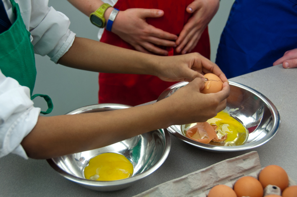 We started with eggs. Separating eggs is always a popular activity (it’s not that easy so thankfully John had extra eggs….). We were making ide cream so we just needed the yolks.