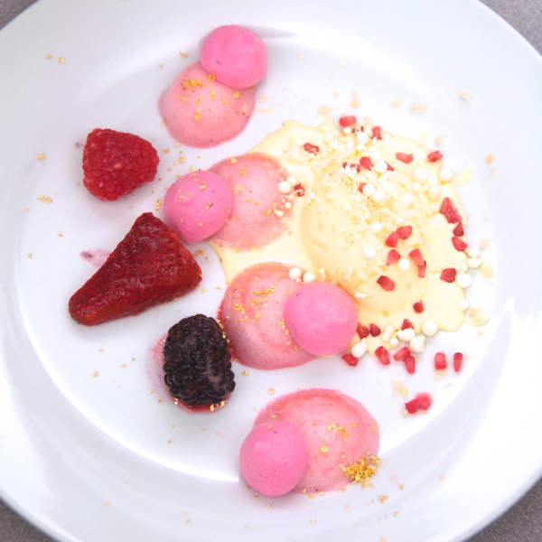 This week, John worked with a whole lot of regular ingredients to create a magical (and pretty!) plate of berries in various textures.