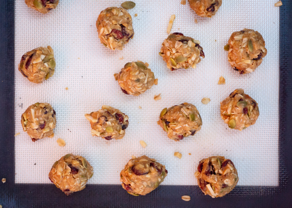- Using a rubber spatula, gently press in the oats, cranberries, almonds and pumpkin seeds.