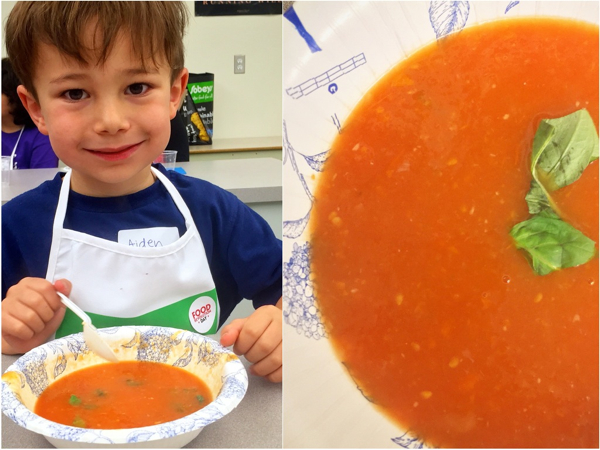 We were making a tomato soup, the Squash It Sandwiches and four different smoothies with our class – easy enough recipes to be “do-able” in the 2 hours, but complex enough for kids to really understand that they CAN cook real (tasty) food!