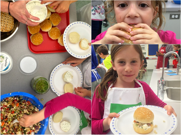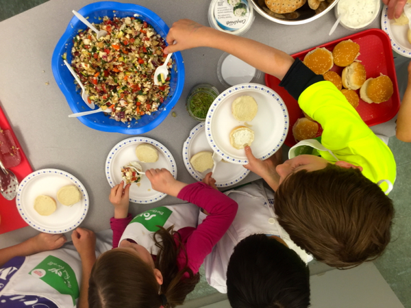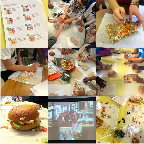 We were there for just over an hour, and during that time, we were fortunate enough to be one of the locations selected to cross to Jamie in London on his Food Tube live show. Unfortunately, technology not being as cooperative as it might have been, our moment in the spotlight was fleeting and our sound didn’t work but Jamie saw us (and a whole cafeteria full of kids making the sandwich) and gave us a brief wave! Overall, a great event getting so many kids (including Grade 3 students from Wilmington Elementary School visiting for the morning) making and talking about food. I mean, that’s what it’s all about, right? Read Susan’s account of the day on her site here.