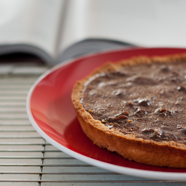 You can find Dorie Greenspan’s recipe for Chocolate Chestnut Tart with Vanilla Chestnut Syrup on page 172 of Baking Chez Moi or an adapted version here.