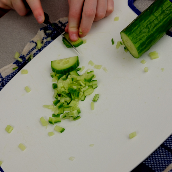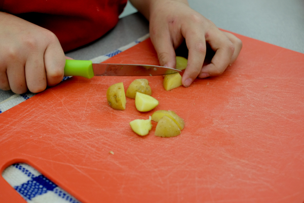 We started out chopping the potatoes – the perfect job for tiny hands!