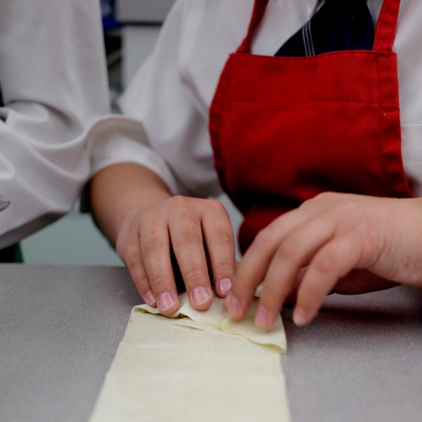 - Cut the pastry sheet into four, lengthwise and work with one strip of pastry at a time.