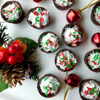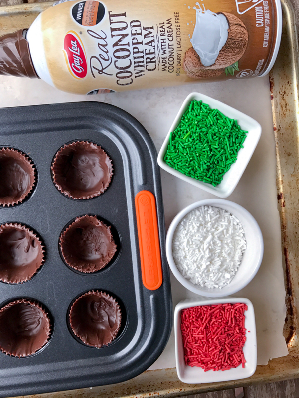 These chocolate cups are easy to make in advance and assemble just when you are ready to serve. The components travel easily (especially if you don’t want to do any prep except assemble when you arrive) so they are perfect for holiday pot lucks too! I’ve used Gay Lea Coconut Whipped Cream to make them dairy-free (I have a lot of friends and colleagues who can’t eat dairy these days so it’s nice to make an inclusive dessert) and they are great gluten-free option too.